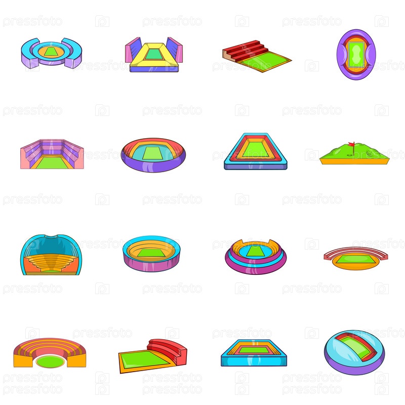 Набор икон стадиона, в стиле мультфильма
