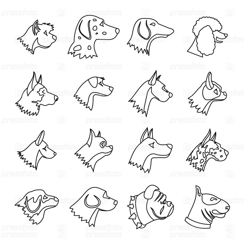 Набор Dog Icons, стиль контуры