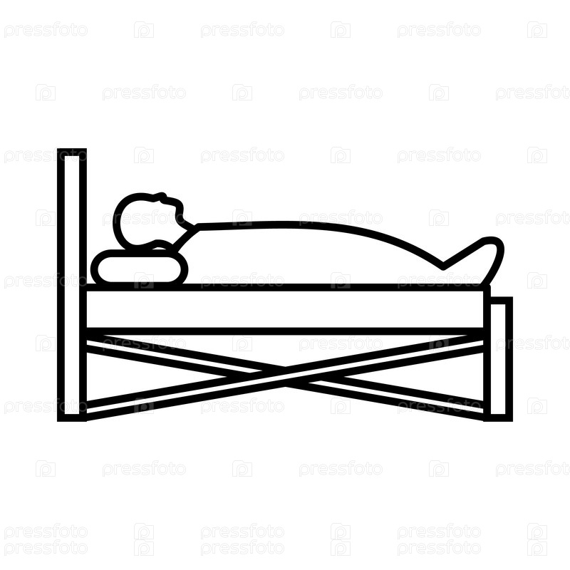 Пациент в постели в больнице икона, стиль контуры