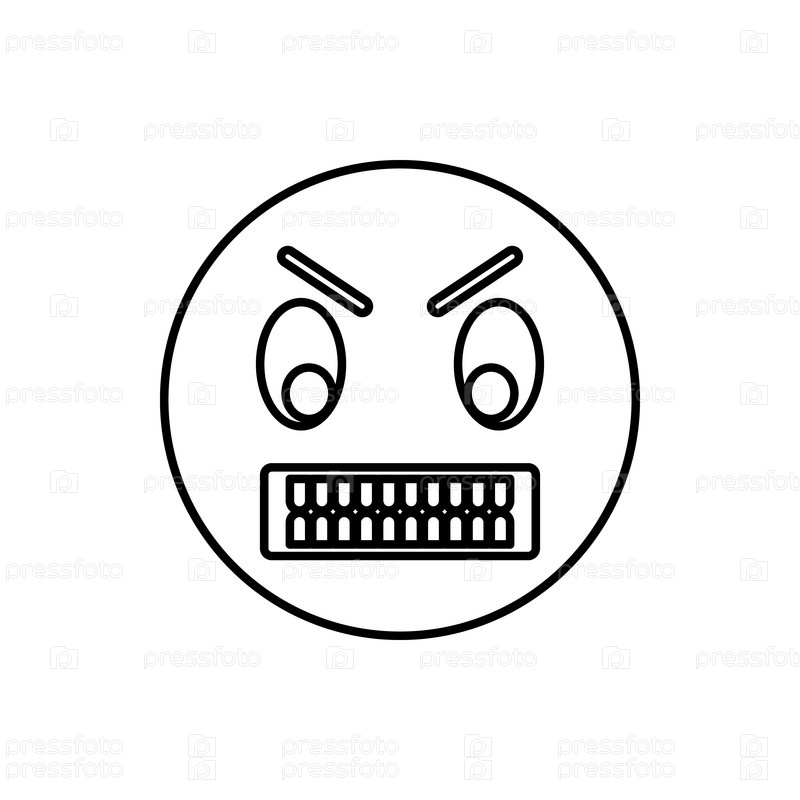 Иконка сердитого смайлика, стиль контуры