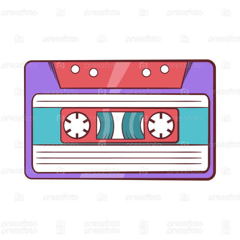 Икона кассетной ленты в стиле мультфильма на белом фоне