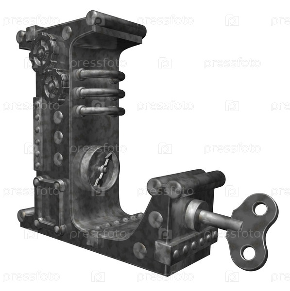 Стимпанк буква L на белом фоне - 3d иллюстрация