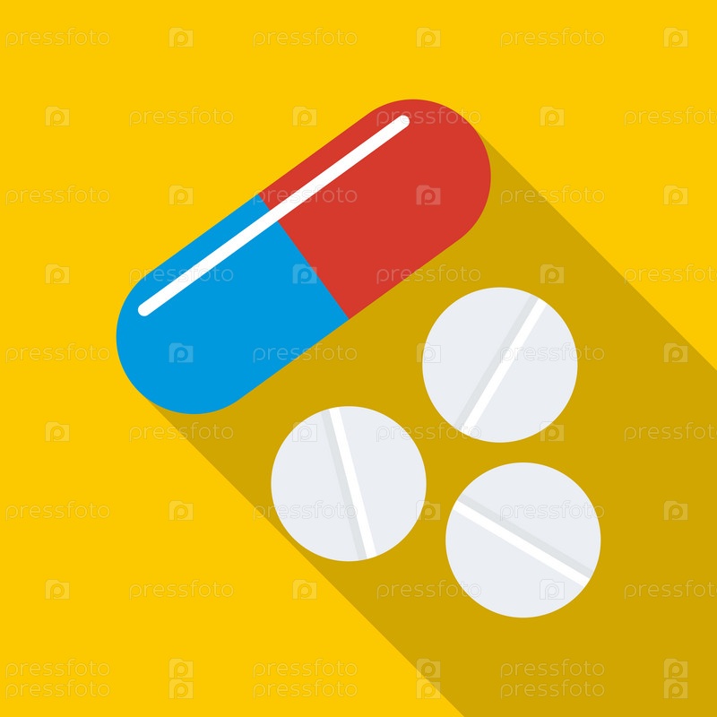 Икона таблеток и таблетки в плоском стиле на желтом фоне