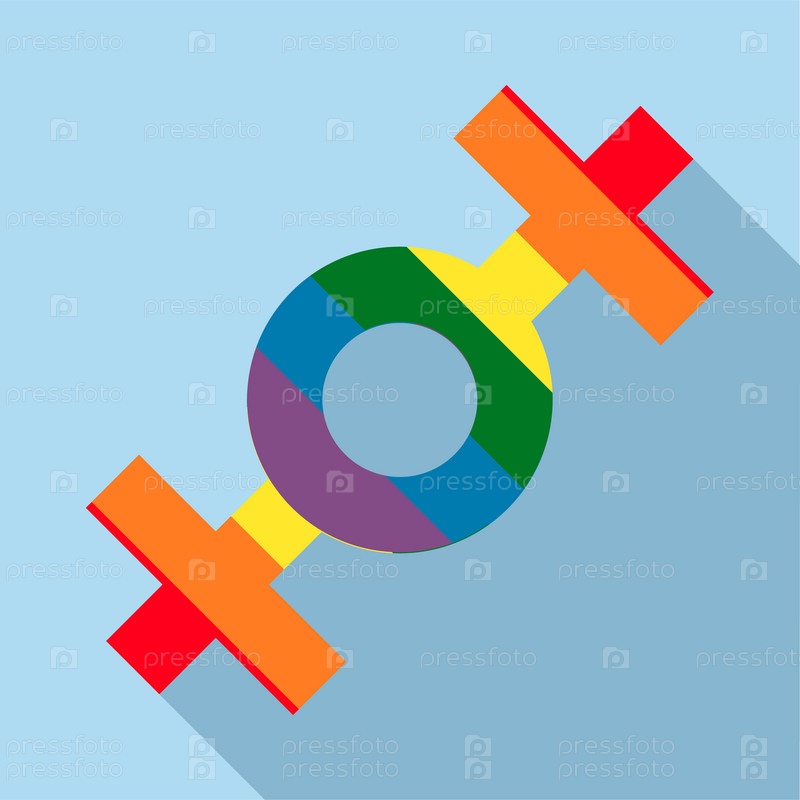 Лесбиянская икона знака радуги в плоском стиле на светло-синем фоне