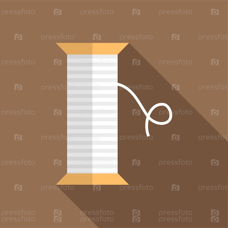 White thread spool icon в плоском стиле на коричневом фоне