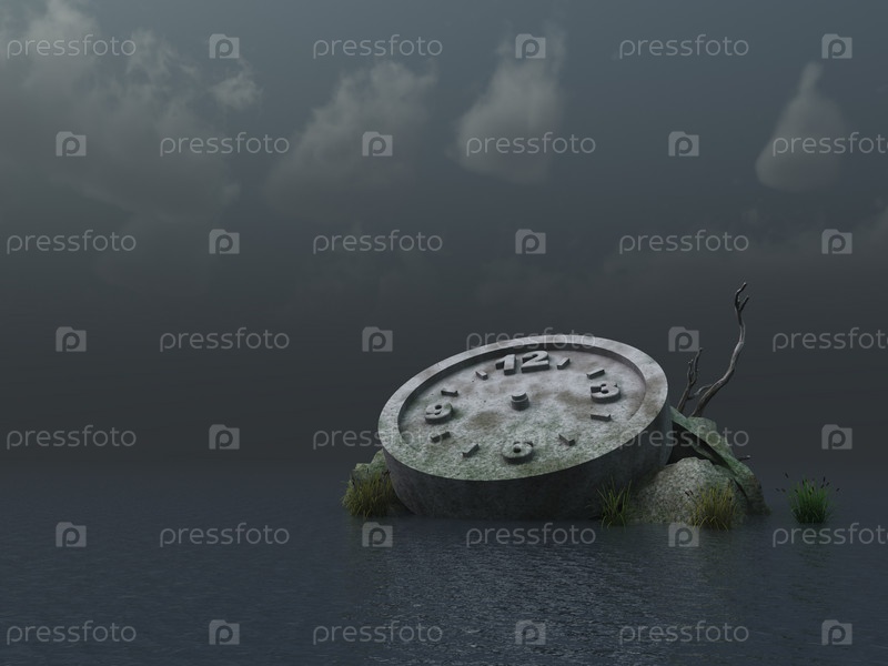Каменные часы в океане - 3d иллюстрация