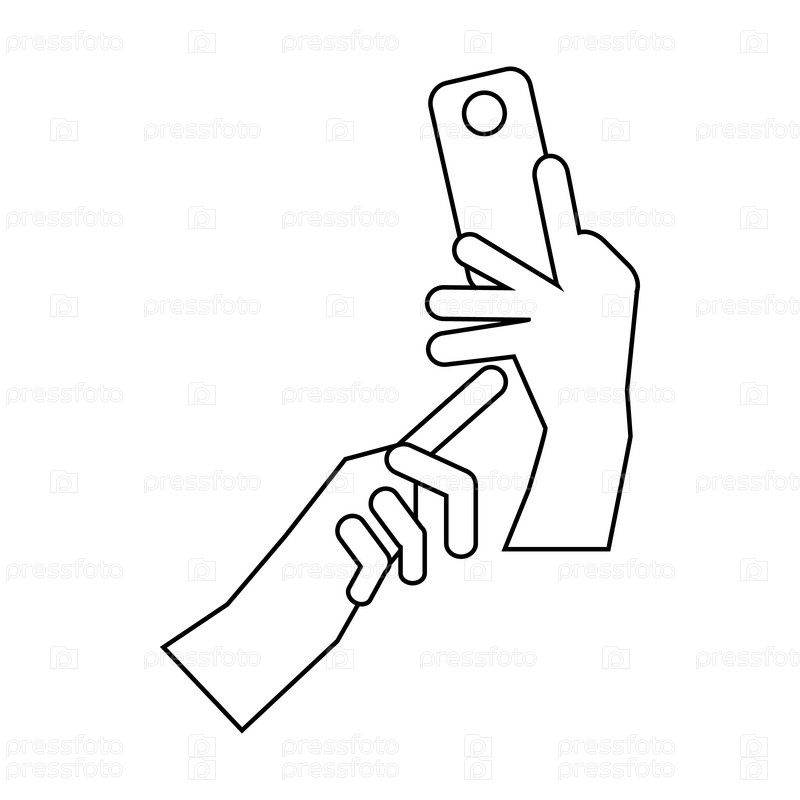 Руки с иконой телефона, стиль контуры