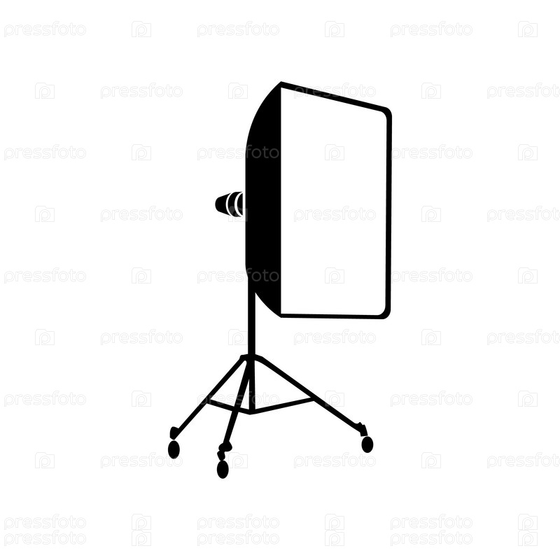 Студийная лампочка в иконе софтбокса в простом стиле на белом фоне