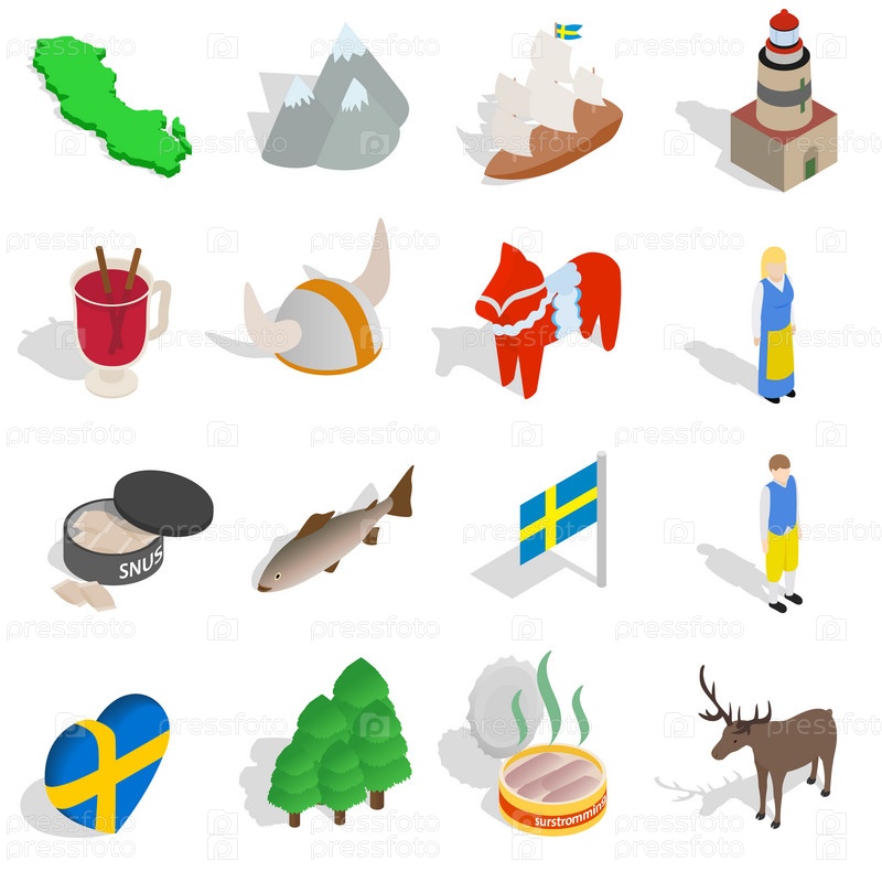 Набор икон Швеции, изометрический 3D-стиль