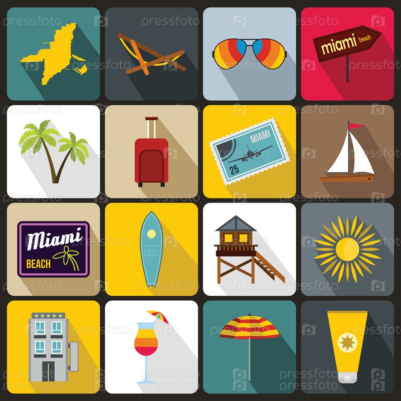 Набор икон, плоский стиль Майами