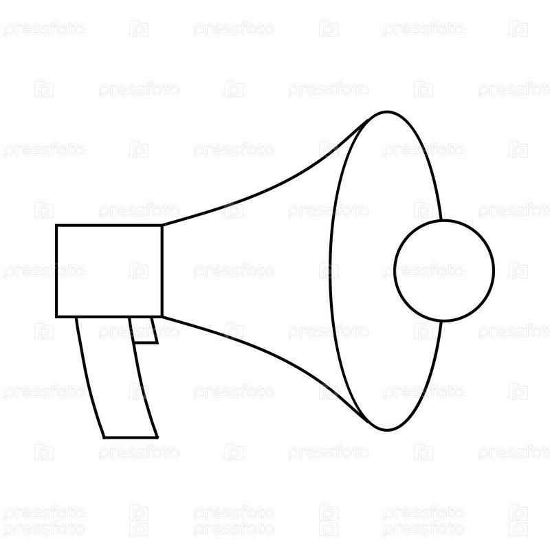 Мегафон, икона громкоговорителя в стиле контуры на белом фоне