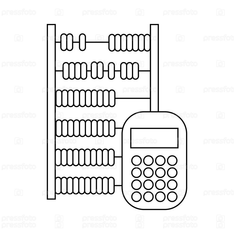 Икона абакуса и калькулятора в стиле контуры на белом фоне