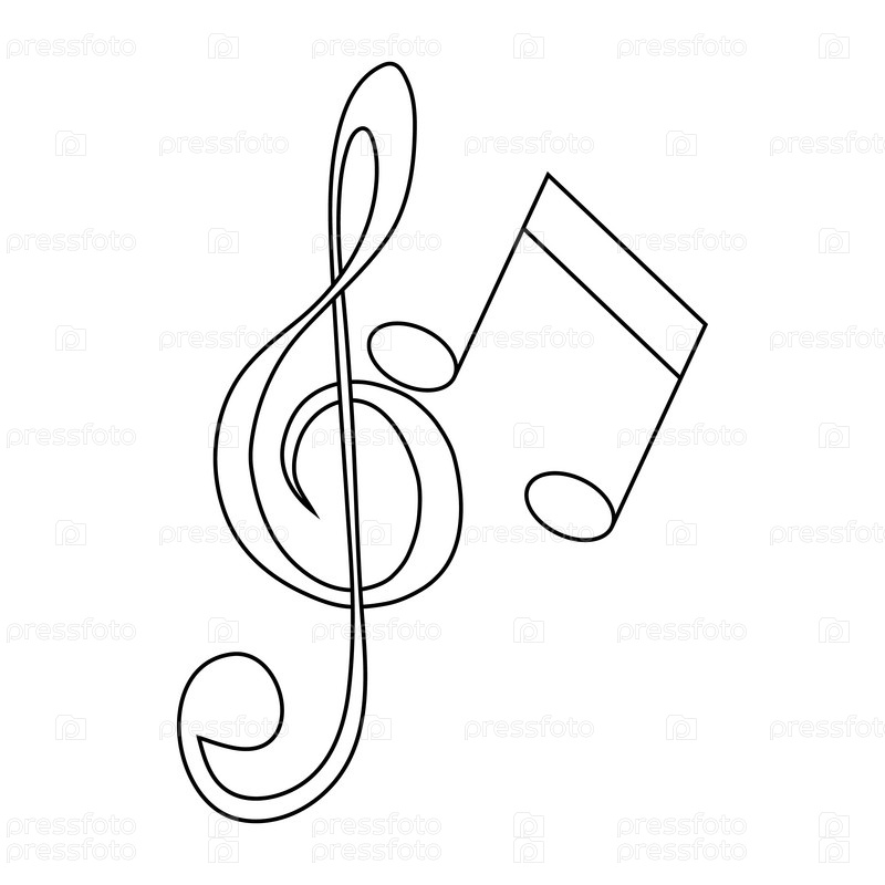 Икона музыкальной клавиши и нот в стиле контуры на белом фоне