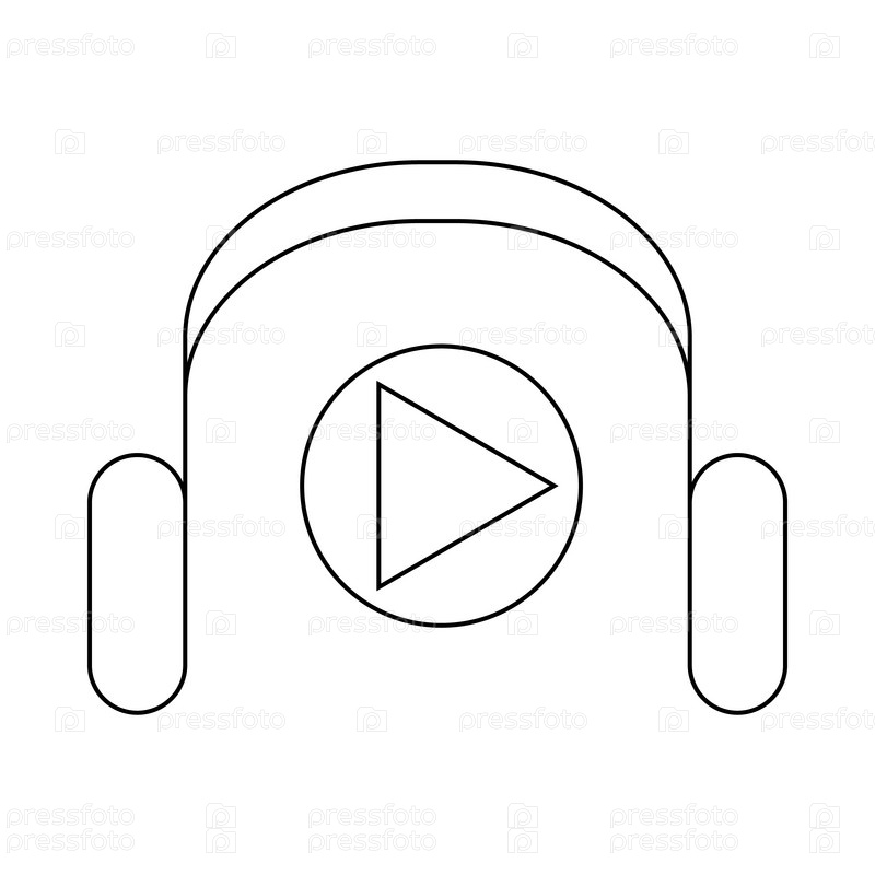 Икона наушников и медиаплеера в стиле контуры на белом фоне