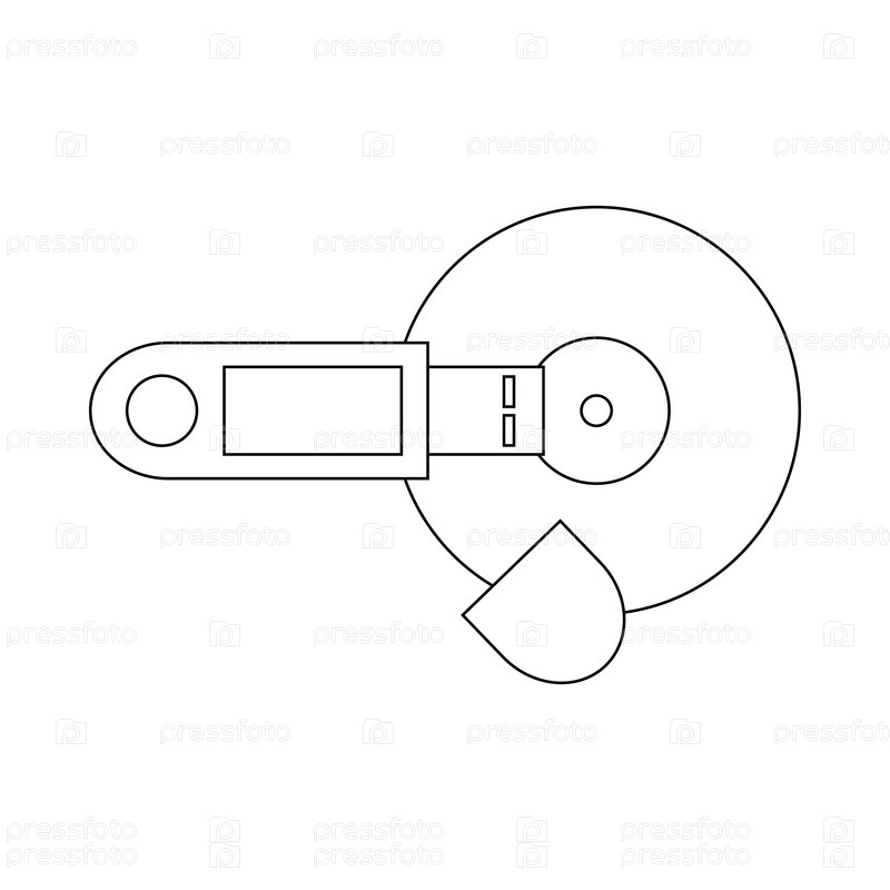 Флеш-накопитель USB и значок CD в стиле контуры на белом фоне