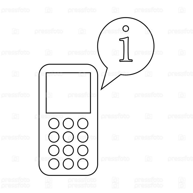 Мобильный телефон и пузырь речи с значком буквы I в стиле контуры на белом фоне