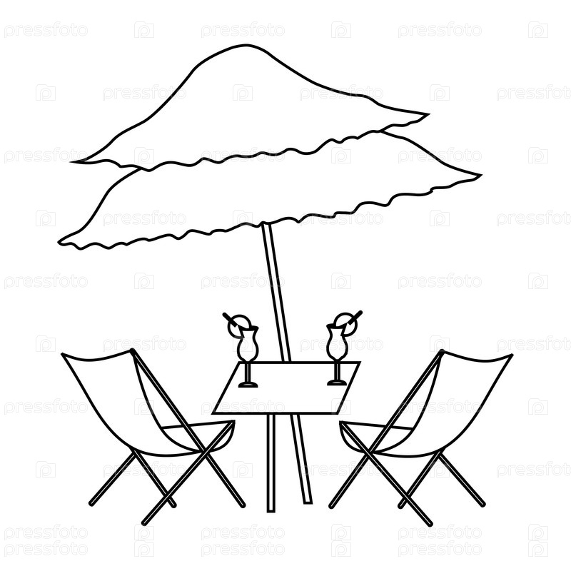 Пляжный стол с коктейлями икона, стиль контуры