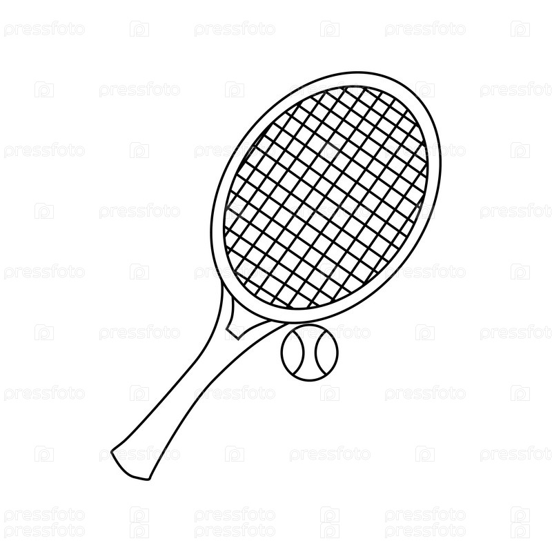 Теннисная ракетка с иконой теннисного мяча в стиле контуры на белом фоне