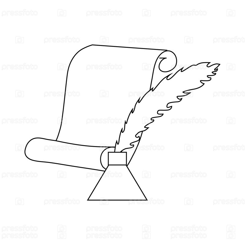 Перо-ручка с иконой чернилки и бумажного свитка