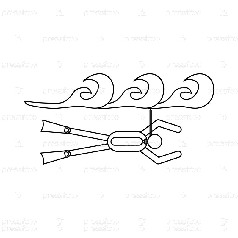 Икона дайвера в стиле контуры на белом фоне