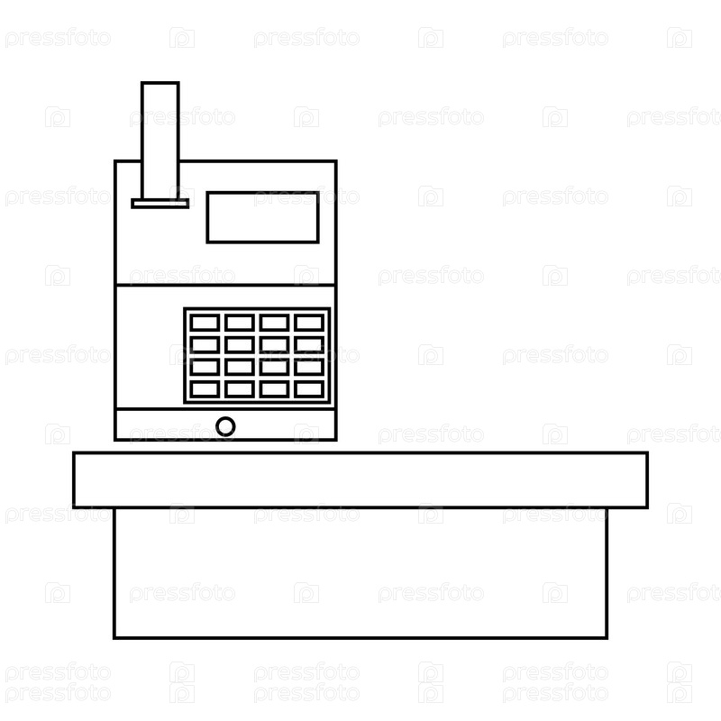 Кассовый стол в супермаркете икона в стиле контуры на белом фоне