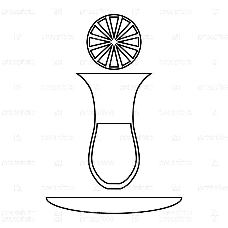 Турецкий чай с иконой лимона в стиле контуры на белом фоне