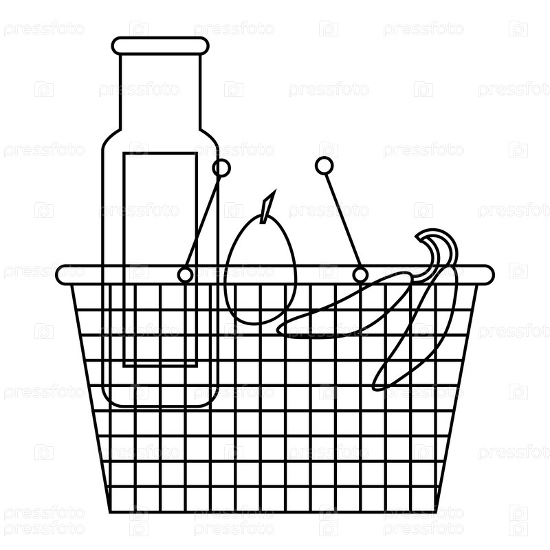 Корзина с иконой продуктов в стиле контуры на белом фоне