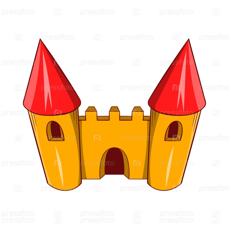 Икона сказочного замка в стиле мультфильма на белом фоне
