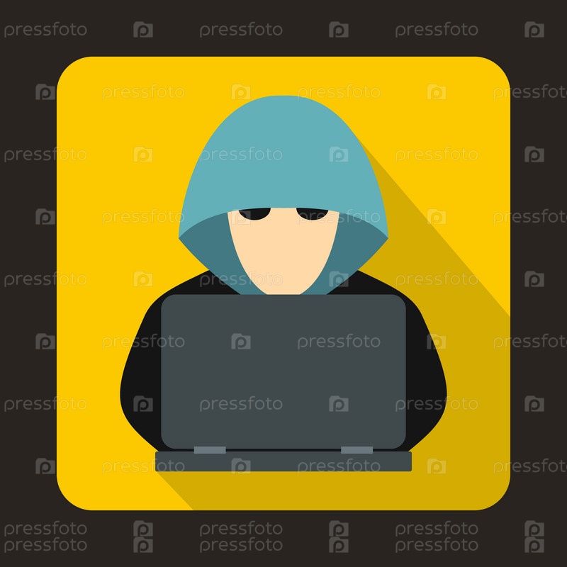 Компьютер с иконой ноутбука, хакером плоского стиля