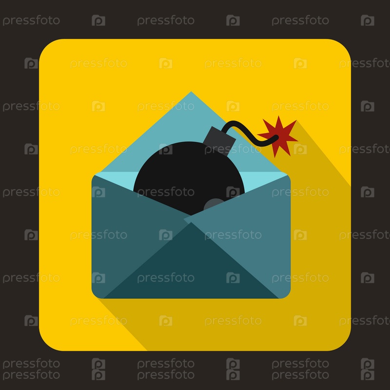 Конверт с иконой бомбы в плоском стиле на желтом фоне