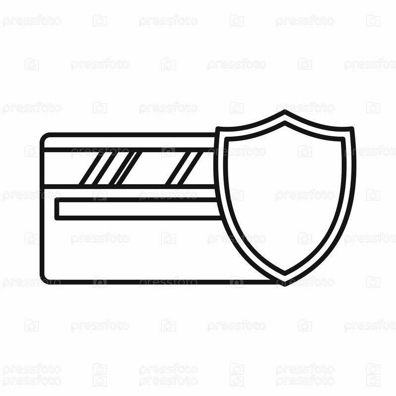 Икона кредитной карты и щита, стиль контуры