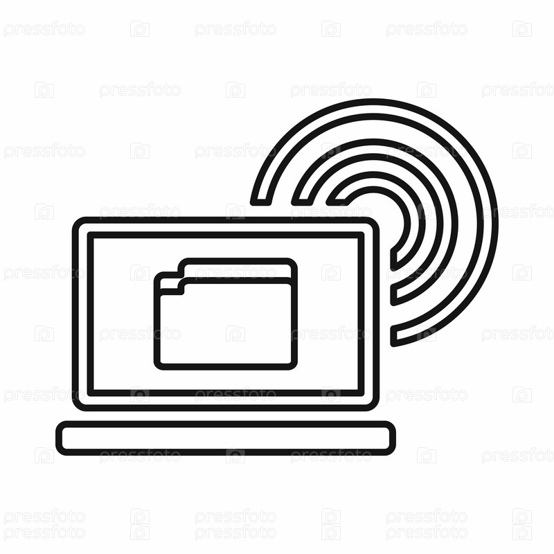 Ноутбук и символ беспроводной связи, стиль контуры