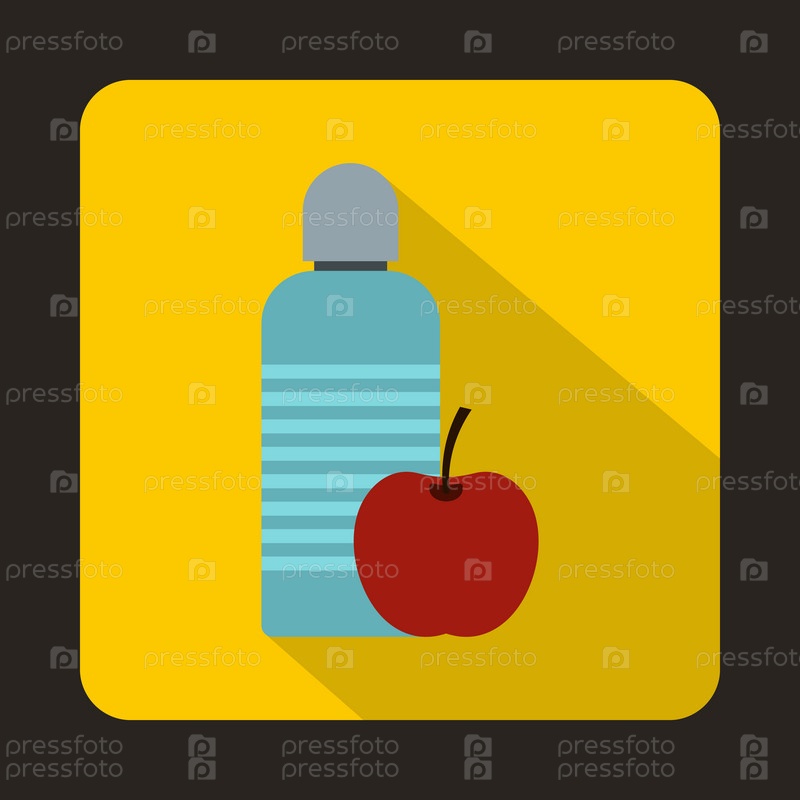 Бутылка воды и красная яблочная икона в плоском стиле на желтом фоне