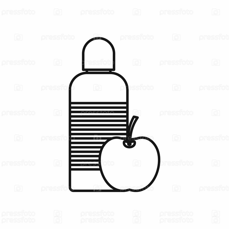 Бутылка воды и яблочная икона, стиль контуры