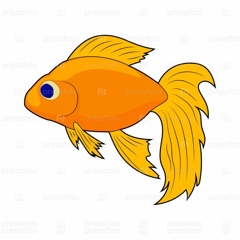 Икона золотой рыбки в стиле мультфильма на белом фоне