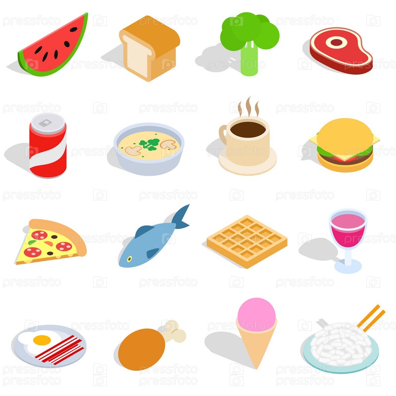 Набор пищевых икон, изометрический 3D-стиль