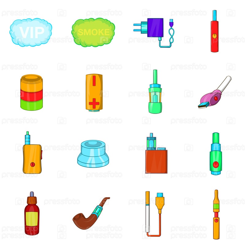 Набор икон электронных сигарет, в стиле мультфильма