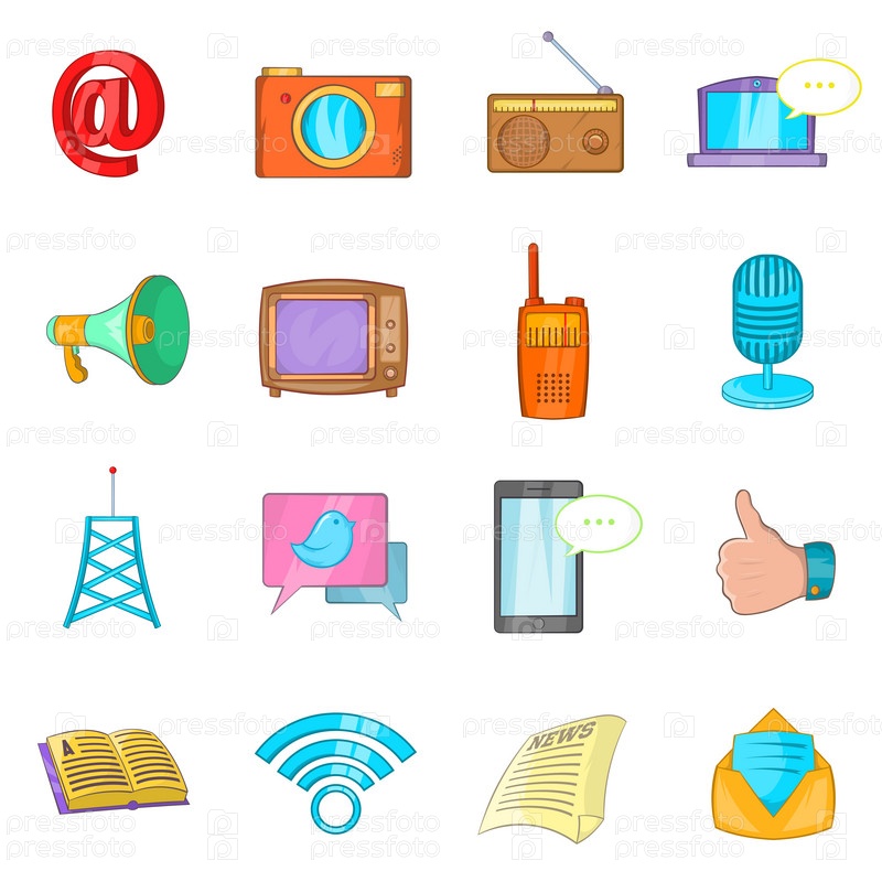 Набор значков коммуникации, в стиле мультфильма