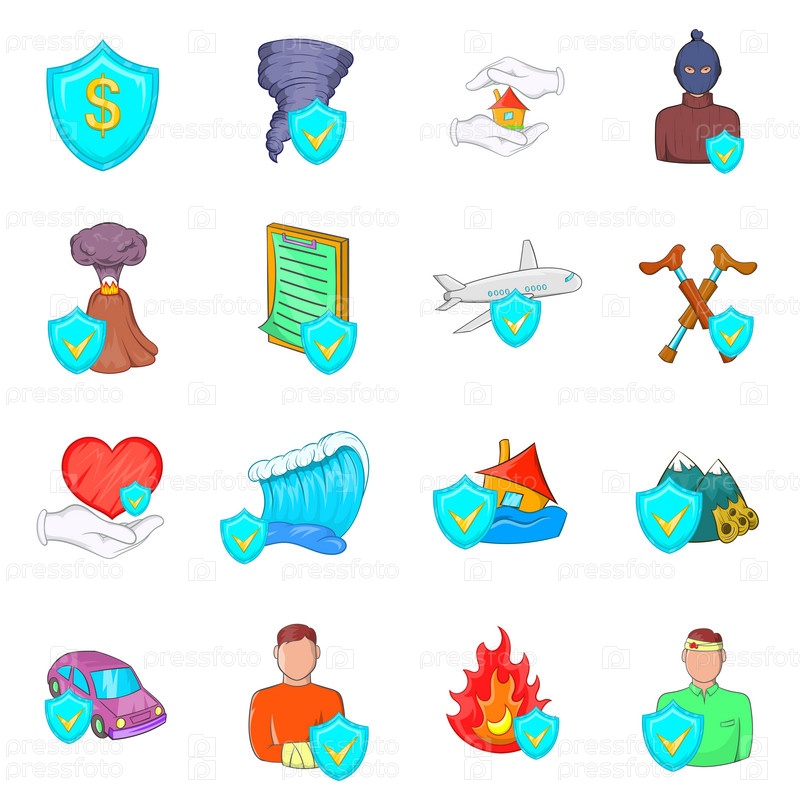 Набор икон страхования, в стиле мультфильма