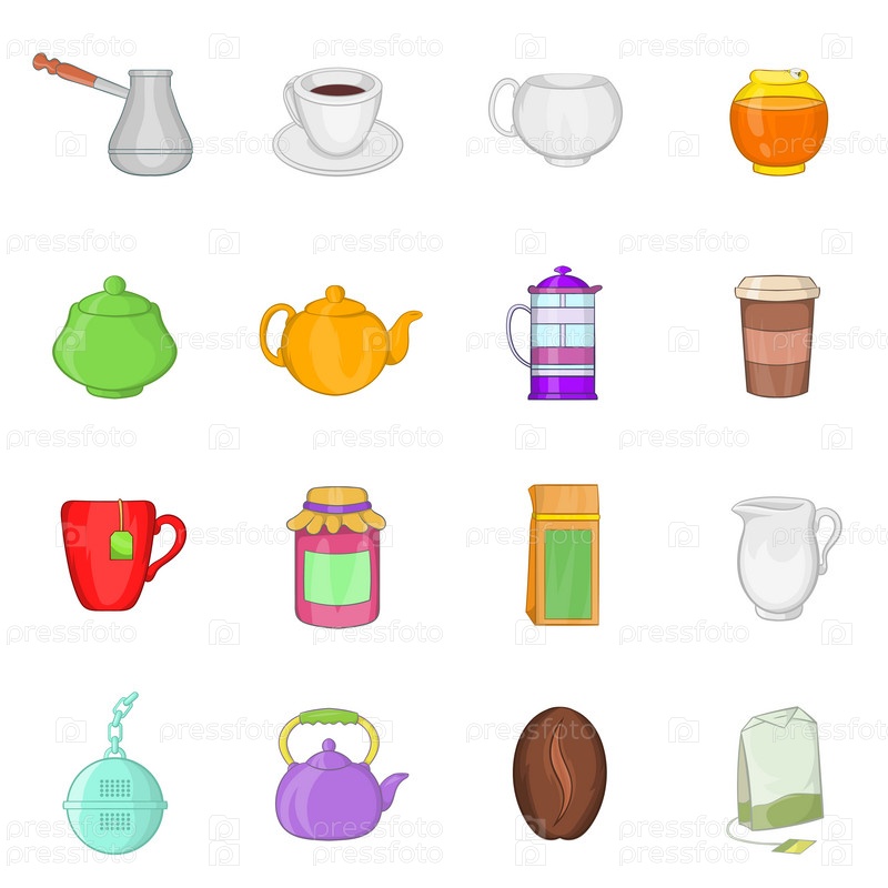 Комплект чая и кофе, в стиле мультфильма