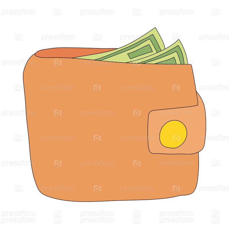 Коричневый кошелек с иконой наличности в стиле мультфильма на белом фоне