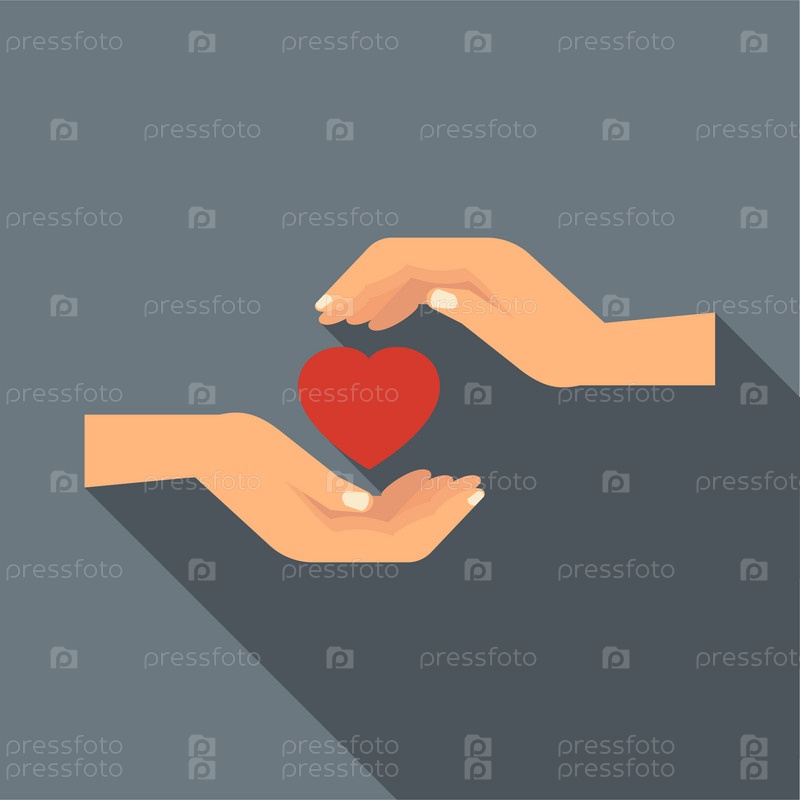 Руки, держащие иконку сердца, плоский стиль
