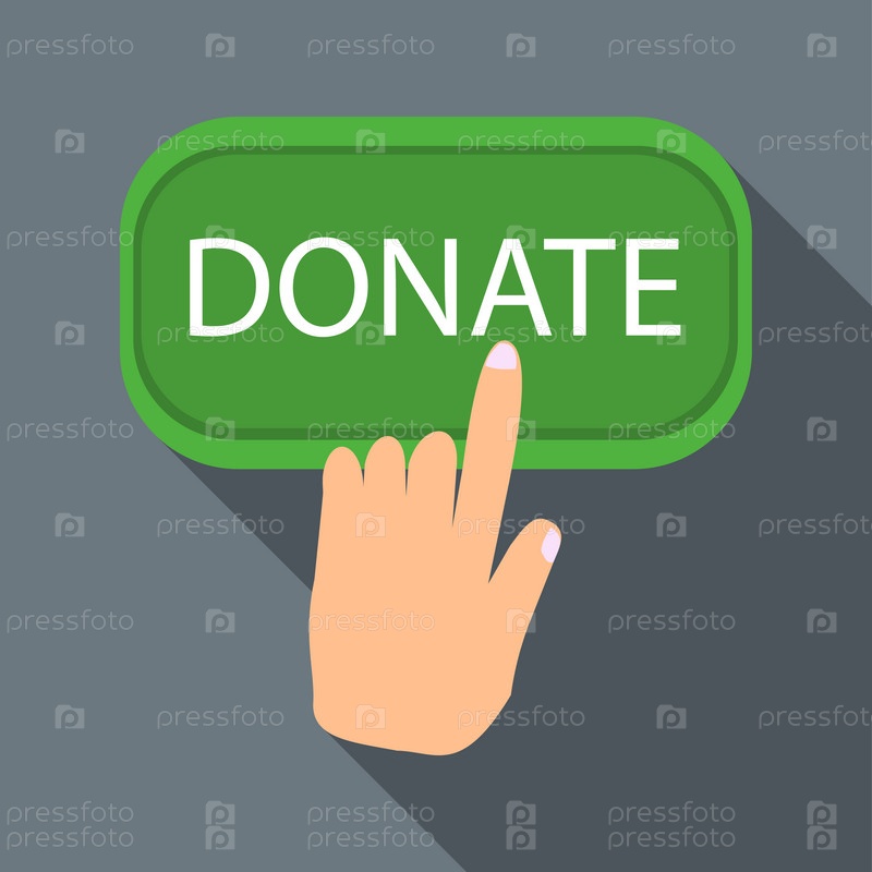 Рука нажимает кнопку для пожертвования иконы, плоский стиль
