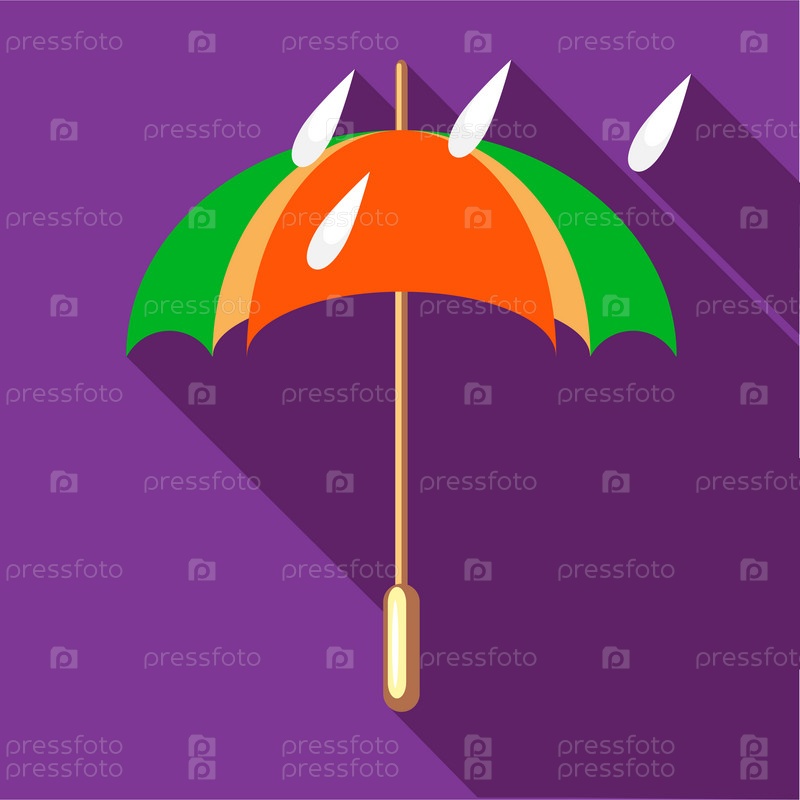 Цветные зонтики и дождевые капли значок в плоском стиле на сливовом фоне