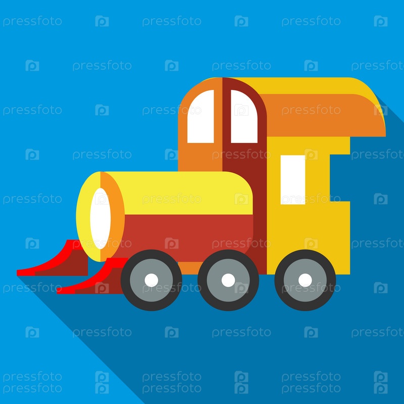 Икона желтого игрушечного поезда в плоском стиле на небесно-синем фоне