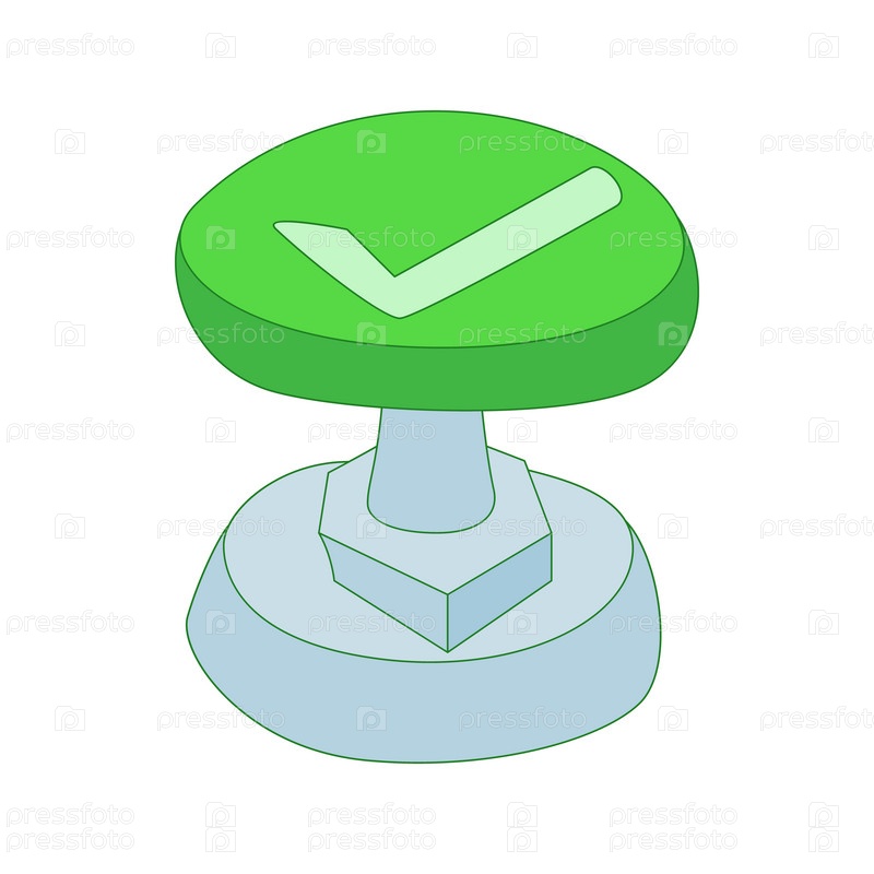 Зеленая кнопка с иконой отметки, стиль мультфильм
