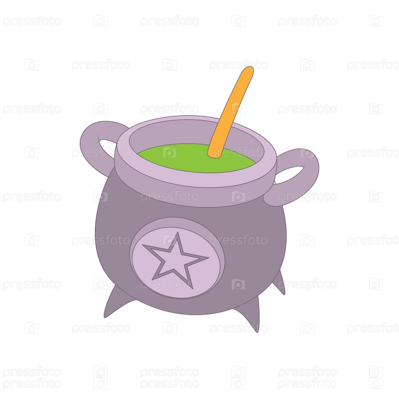 Колдовский котёл с иконой зеленого отвара в стиле мультфильма на белом фоне