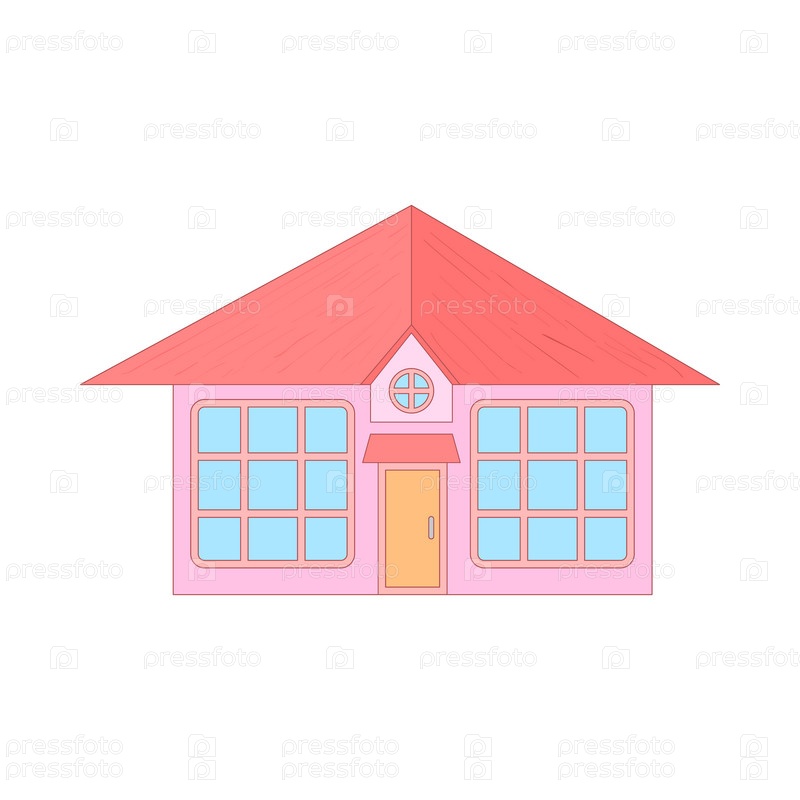Розовый коттедж с большими окнами иконы в стиле мультфильма на белом фоне