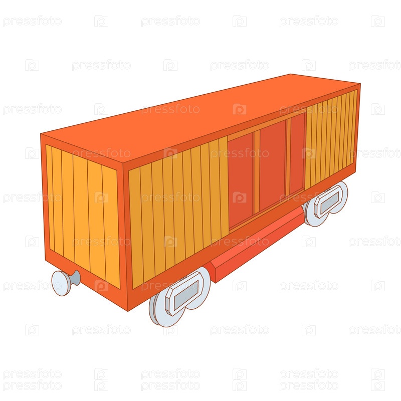 Икона железнодорожного грузового контейнера в стиле мультфильма на белом фоне
