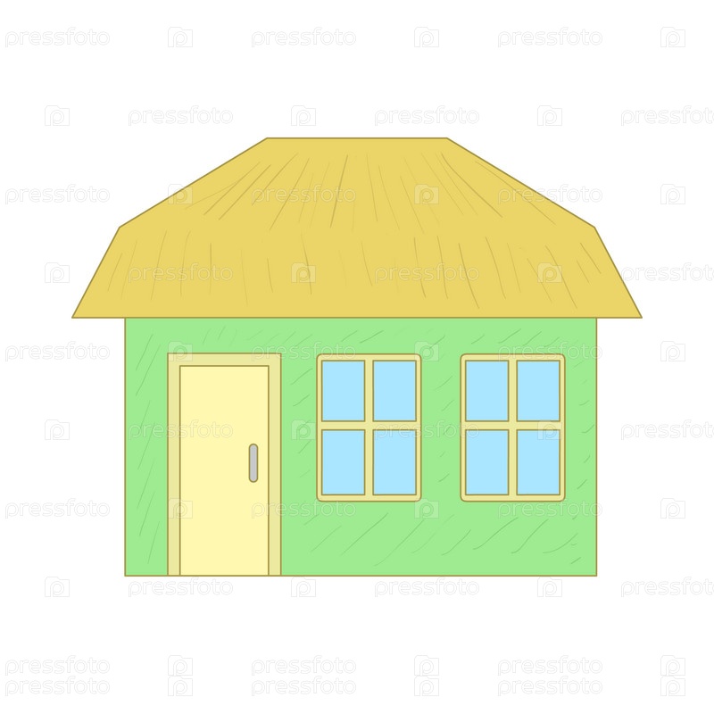 Икона зеленого коттеджа в стиле мультфильма на белом фоне
